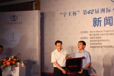 記者會見で、威海放送局黨委員會書記長が、胡祿宇王グループの黨委員會副書記隋樹武、第41回「インターコンチネンタルさん」中國大會のチャンピオン溫曉菁挨拶を持って、三人のゲストとともに、タッチ水晶球、共同起動威海地區、また今後「インターコンチネンタルさん」の威海試合地區の試合の円満な成功。その後の代表選手に展示T臺風採。